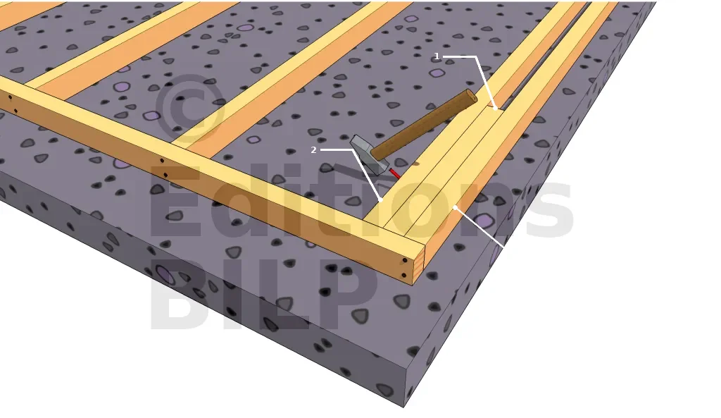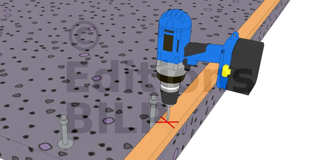 Il suffit alors de marquer le point de fixation des montants en respectant l’écartement, à savoir entre 40 et 60 cm. Il faut savoir que les marques doivent être alignées au centre de la base de chaque montant.