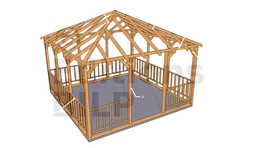 Vue 3dGloriette avec ossature poteaux-poutres