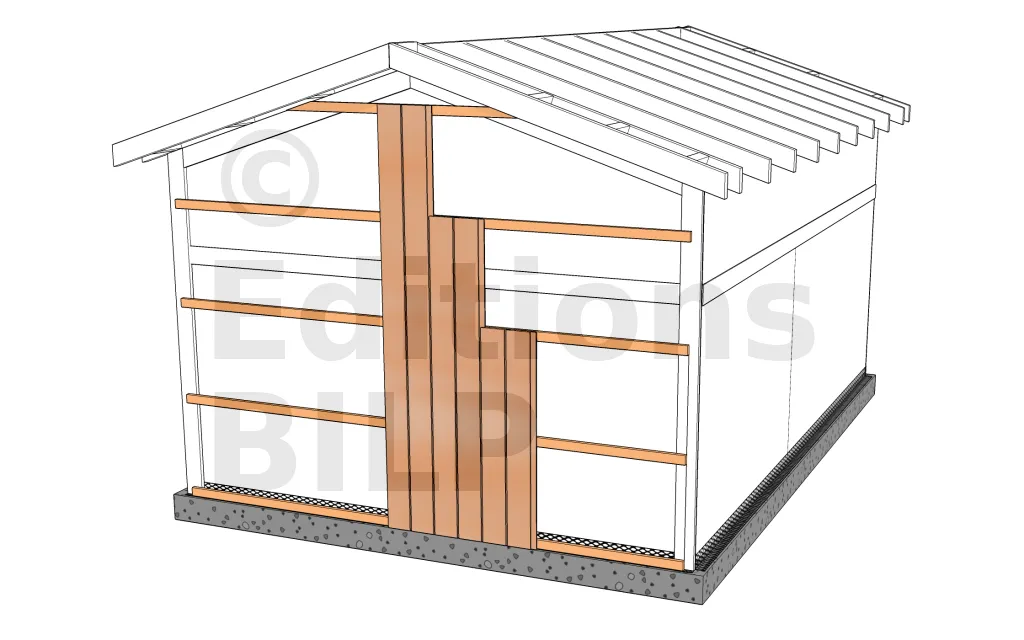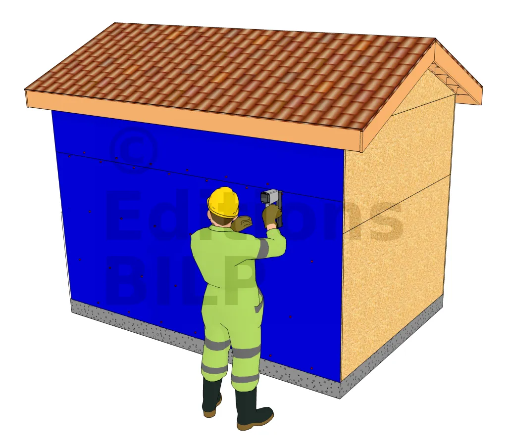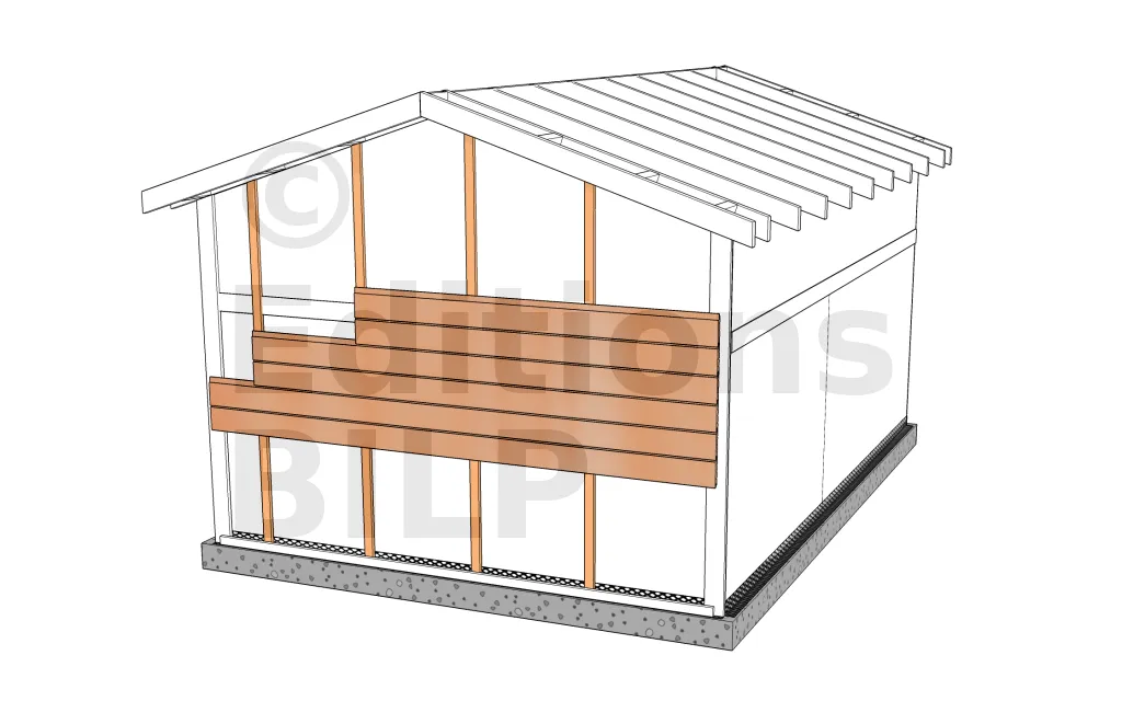 Certaines constructions, notamment les petits abris de jardin non-chauffés, ne disposent pas de panneaux de contreventement. On peut alors fixer le bardage directement sur les montants d’ossature : Réalisation des escaliers extérieurs