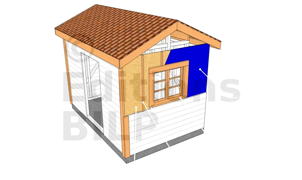 Tout d’abord, installez une feuille d’étanchéité pour limiter l’entrée d’air et d’humidité, ainsi que pour maintenir la chaleur. Bien couvrir toute la face. Au niveau des ouvertures, vous pouvez enrouler les excès autour des portes et fenêtres pour former un joint.