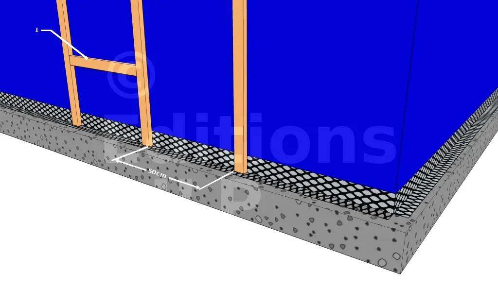 - 1 : Les tasseaux de fixation doivent avoir une section inférieure ou égale à la profondeur de la grille