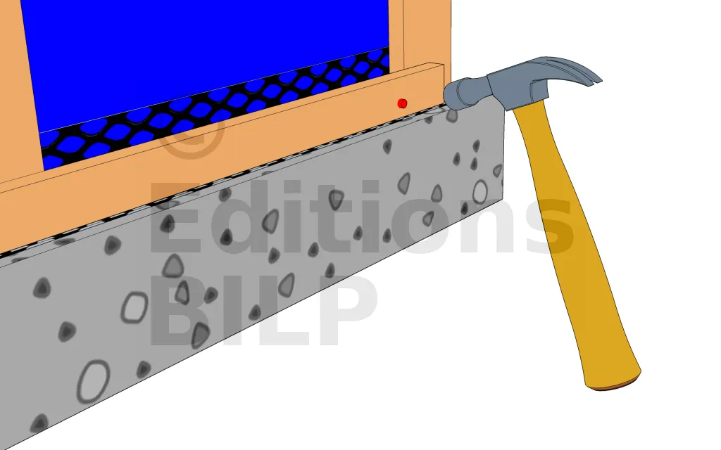 Ainsi, après avoir fixé la grille anti-rongeur, il faut installer le premier tasseau de fixation.