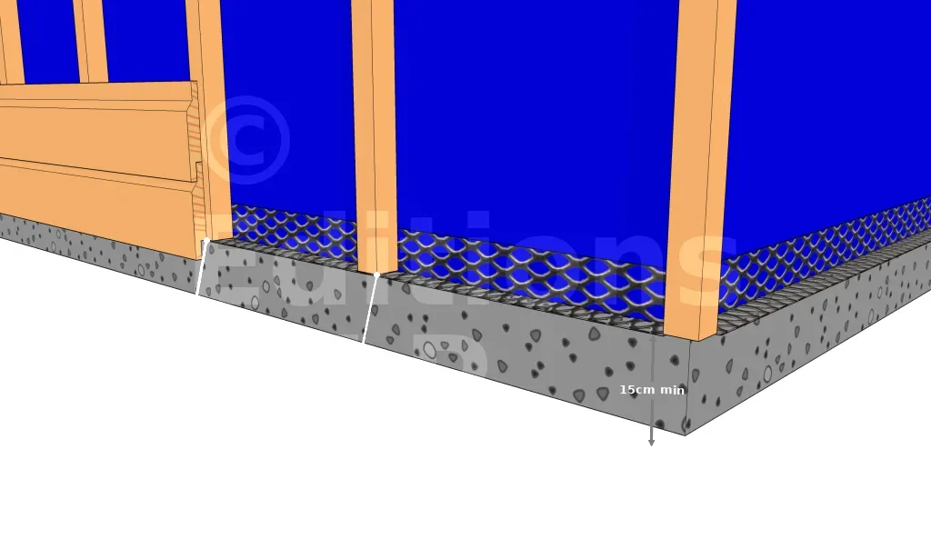 La grille est fixée à au moins 15cm par rapport au sol. Cette distance correspond au minimum à respecter afin d’éviter une trop grande proximité du bardage avec les zones "pathogènes".