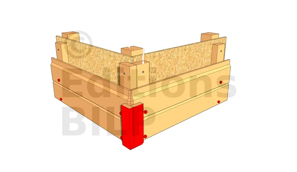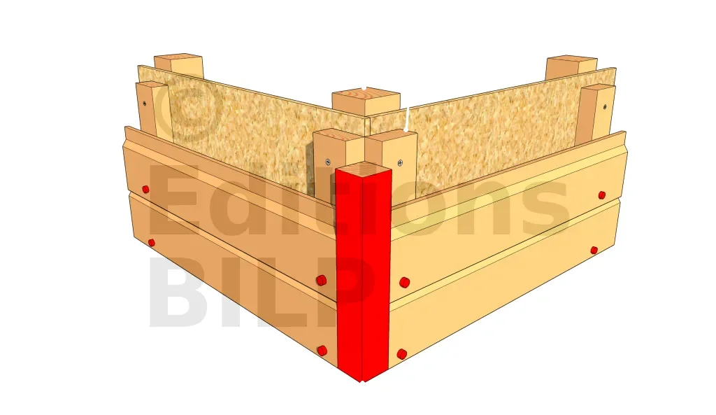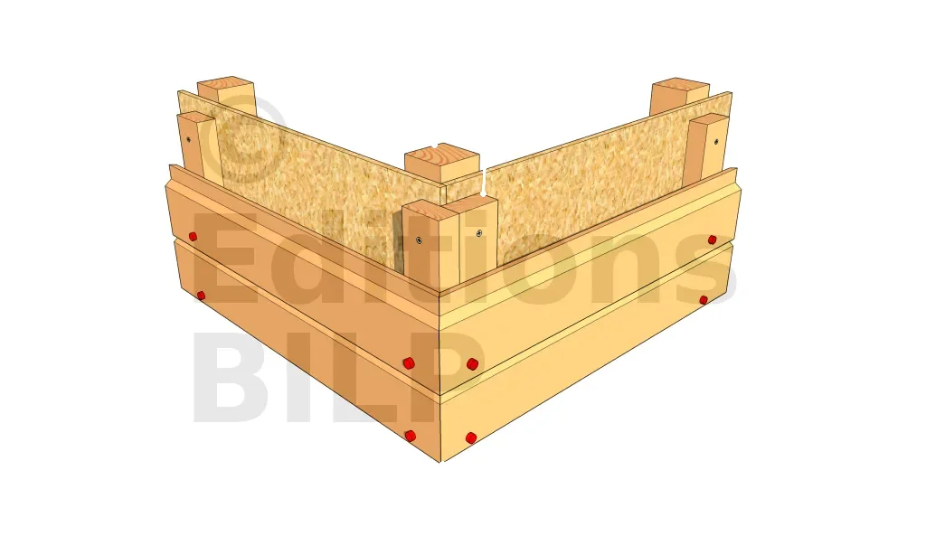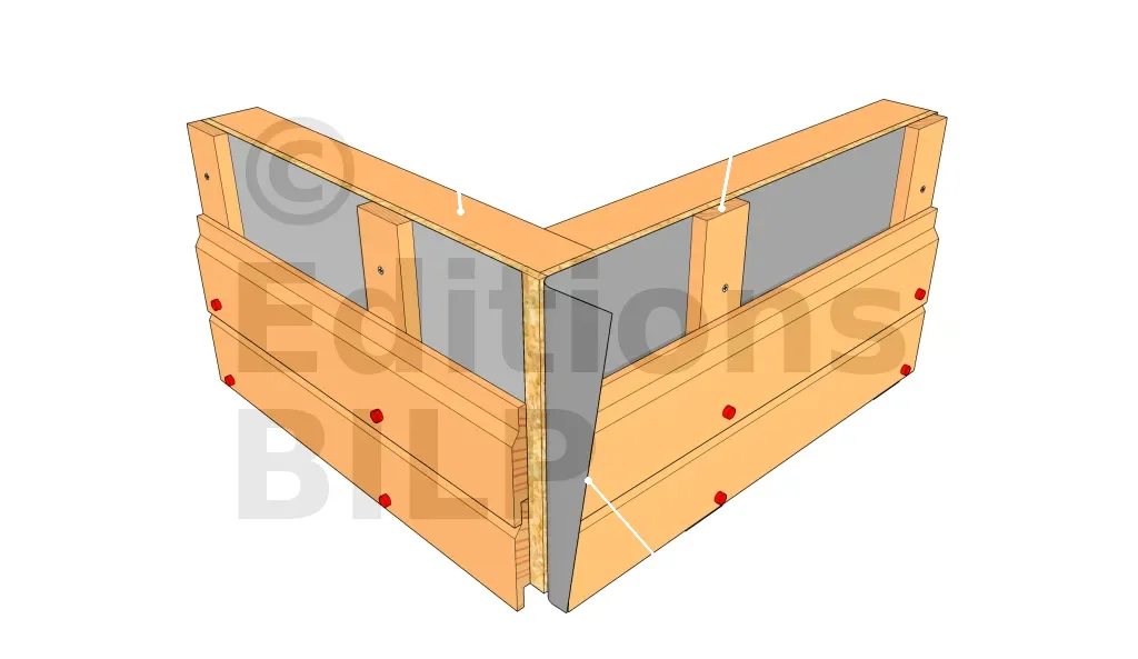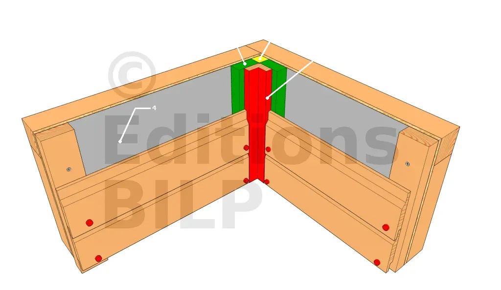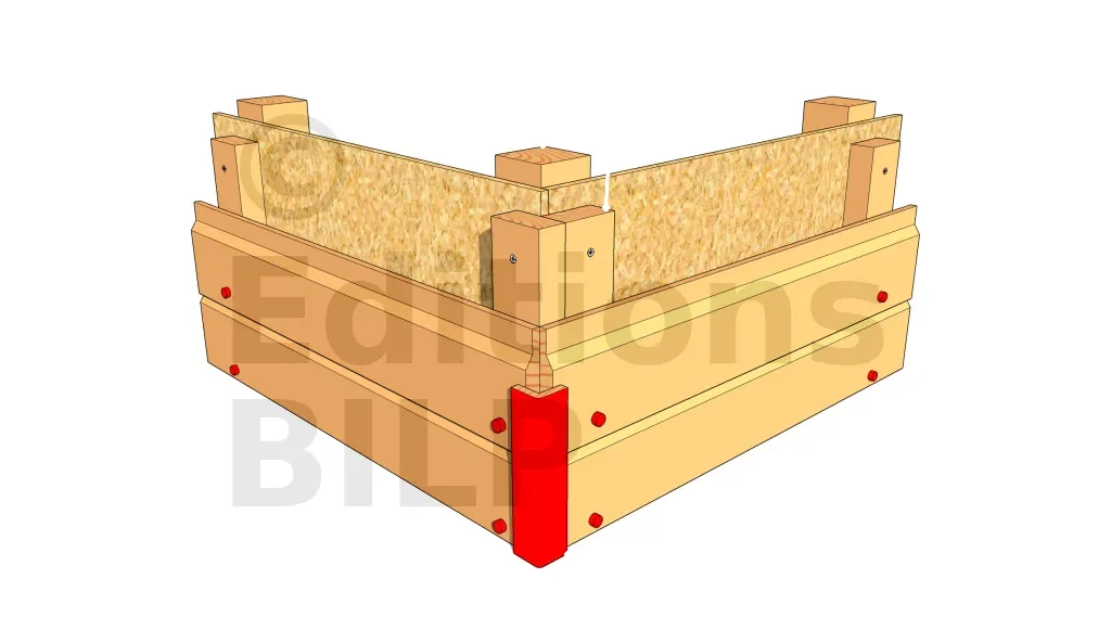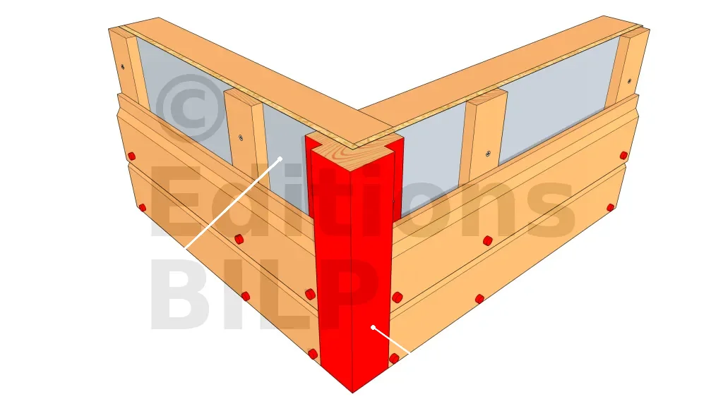 Il existe des profilés préfabriqués en L que l’on peut fixer en angle. Cependant, il est très difficile de trouver des profilés faits dans du bois naturellement durable. C’est donc une solution simple, mais pas très pérenne. On la réserve donc pour une petite construction sans prétention.