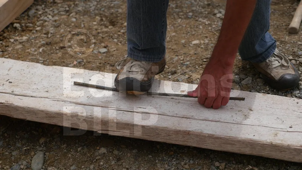 - Buttage des planches par des piquets plantés dans le sol, puis fixation des planches aux piquets.