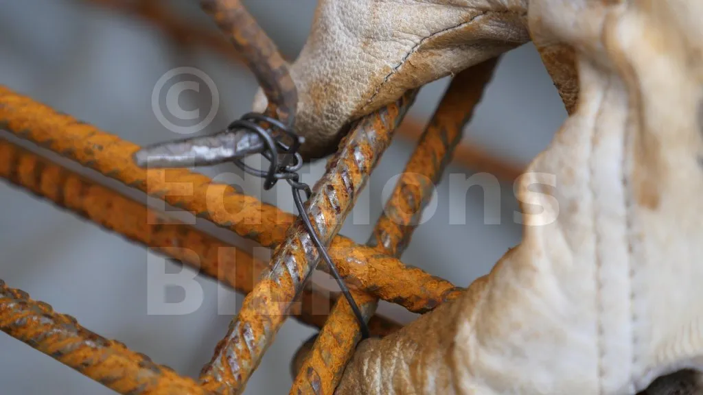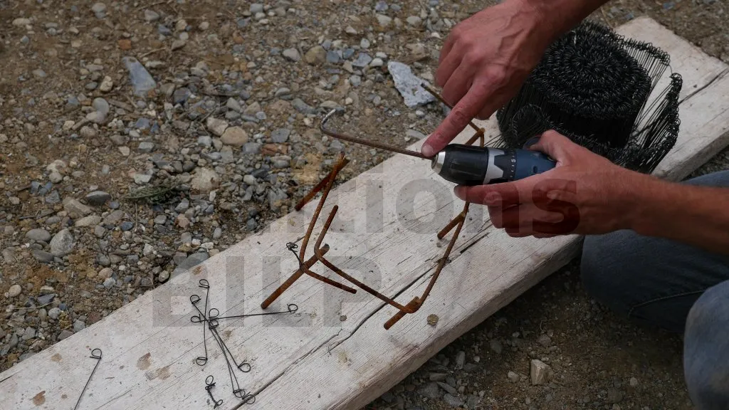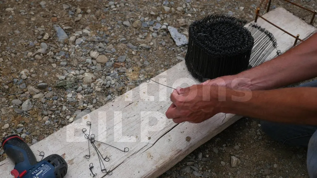 La technique est la suivante, prenez un fil à ligaturer et enroulez-le sur les deux aciers à attacher ; puis placez le crochet de la mèche dans les deux trous du fil à ligaturer ; enfin, faites des torsades avec la visseuse.