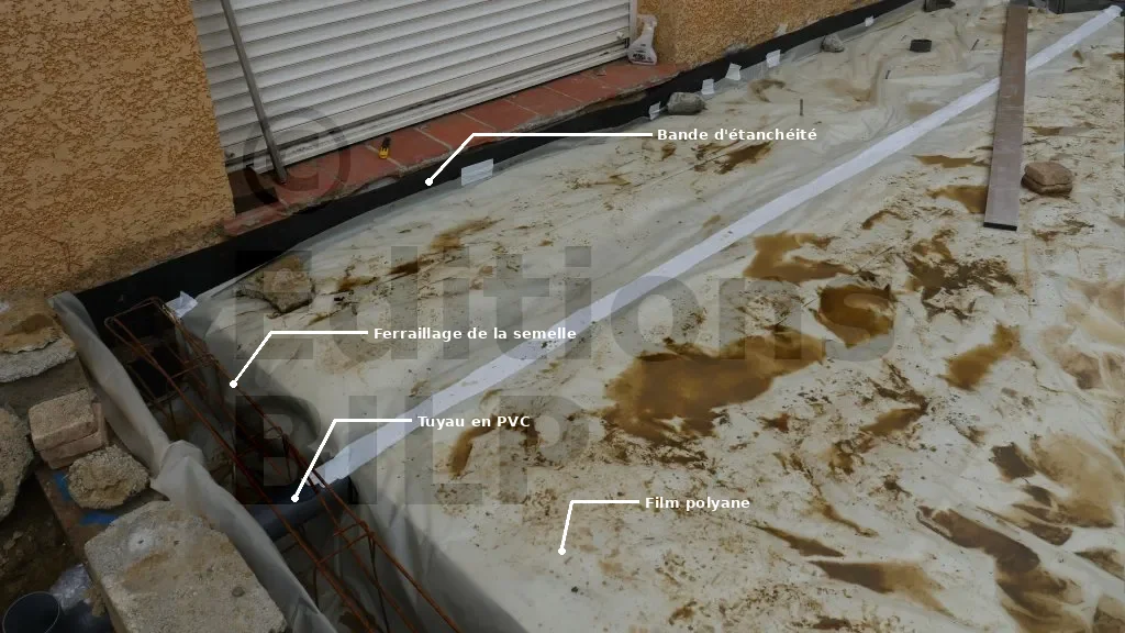 Les aciers sont constitués par le ferraillage de la semelle filante et par les treillis soudés de la dalle.