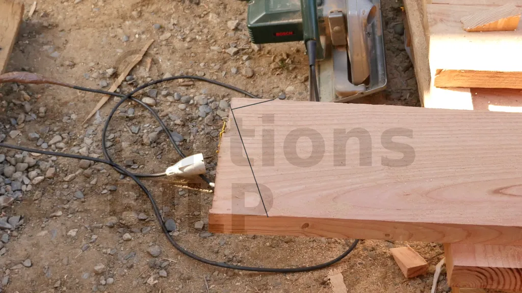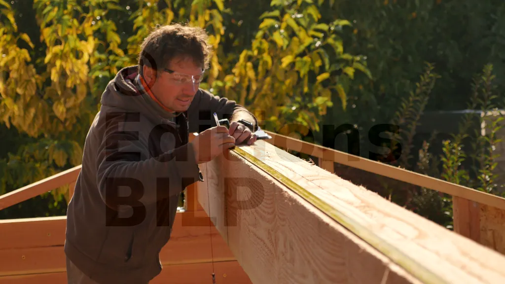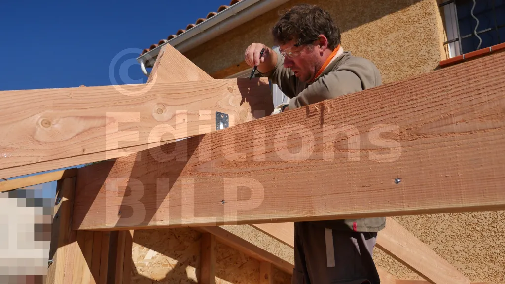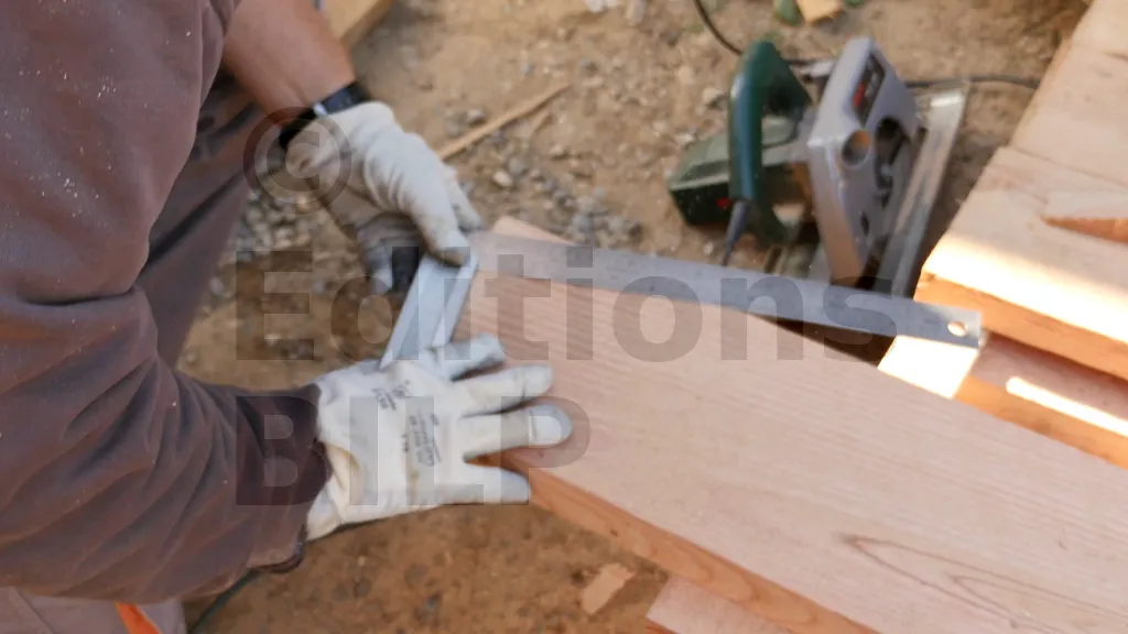 Pour obtenir des coupes précises, les chevrons sont placés côte à côte à leurs emplacements respectifs. Ensuite, les lignes de coupe sont repérées sur les chevrons avec précision.