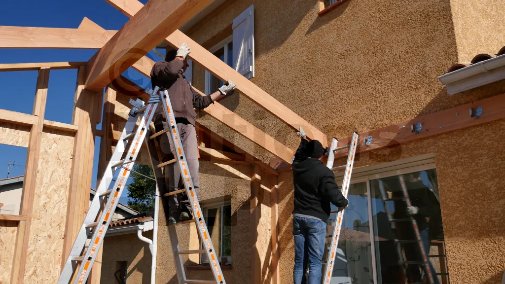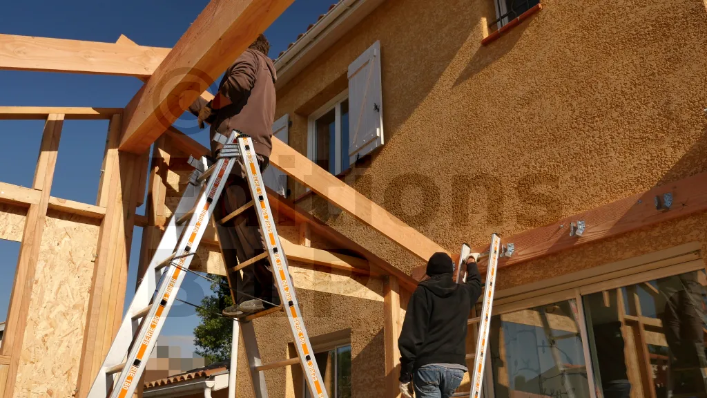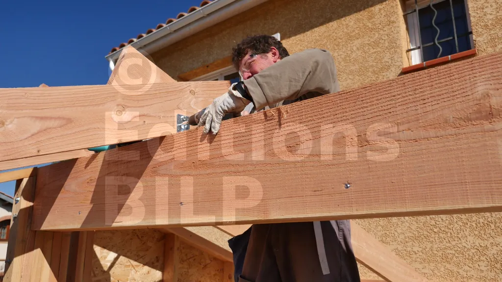Les chevrons sur l’ossature du mur de la façade SUD (1 min)