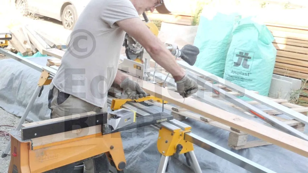 Sur ce chantier, nous avons utilisé des lames de Douglas pour réaliser ce bardage claire-voie vertical. Contrairement aux méthodes traditionnelles utilisant des carrelets pour fermer les angles, nous avons opté pour une solution plus épurée en fixant directement les lames pour former un angle en L, assurant ainsi une finition discrète et esthétique.