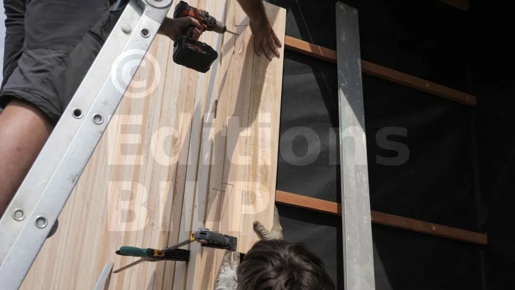 Mise en place du bardage sur une façade