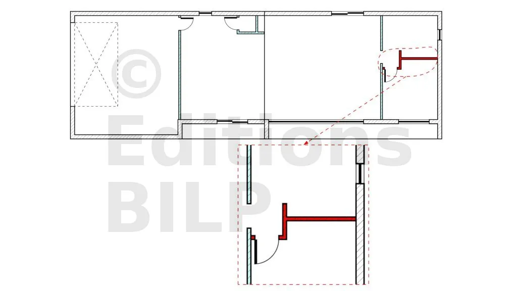 Sur ce chantier, il y a plusieurs endroit ou nous avons mis en place des mur de séparation en plaque de plâtre sur des structures métalliques. Cependant, c’est sur cette partie encadrée que nous allons exposer dans cet article. En effet, le mur sur cette partie nous n’allons pas seulement créer un simple mur mais nous allons également créer un dégagement et des retours d’angles.