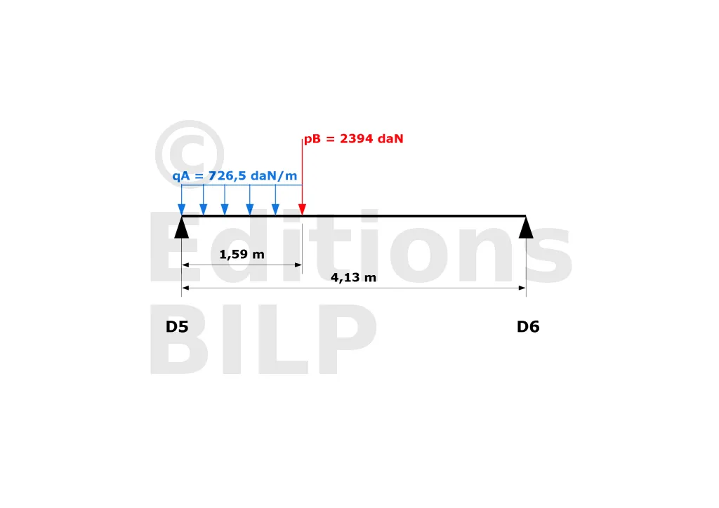 Le calcul des charges est identique à celui de la semelle isolée, à la différence qu’ici nous travaillons entre deux appuis (D5 et D6).