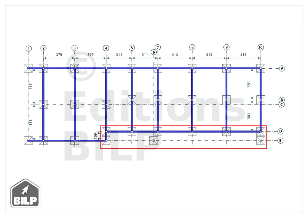 Pour simplifier la mise en œuvre et le dimensionnement des semelles, il est nécessaire de déterminer la semelle la plus sollicitée et de procéder aux calculs sur celle-ci. Les dimensions des semelles seront ensuite uniformisées.