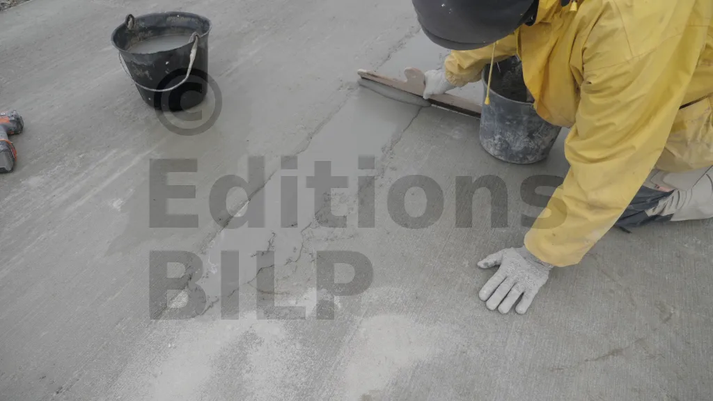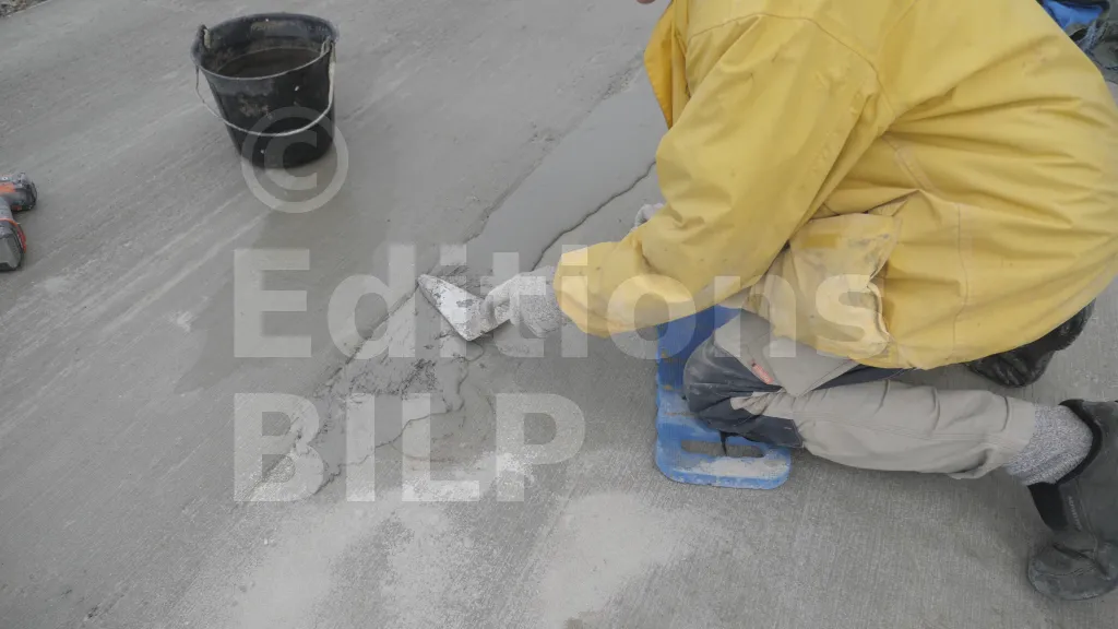 Ensuite, vérifiez si les cordeaux touchent les joints de dilatation ; cela signifie que le niveau du profilé est plus haut que celui de la dalle. En revanche, s’il y a un espace de plus de 1 mm entre le cordeau et le profilé, ce dernier doit être rehaussé. Une fois le niveau ajusté, coulez du béton frais sous les joints de dilatation.