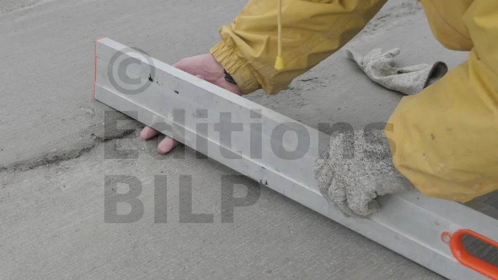 Bien que le béton soit autonivelant, utilisez un râteau ou une règle pour guider le béton vers les zones nécessitant un ajustement mineur. Ensuite, passez la barre à débuller sur la surface du béton et déplacez-la lentement en la faisant glisser doucement. Assurez-vous que la barre reste en contact avec le béton pour permettre à l’air emprisonné de remonter à la surface. Si vous travaillez sur une grande surface, vous devrez répéter cette opération plusieurs fois, en vous assurant de couvrir toute la zone de manière uniforme.