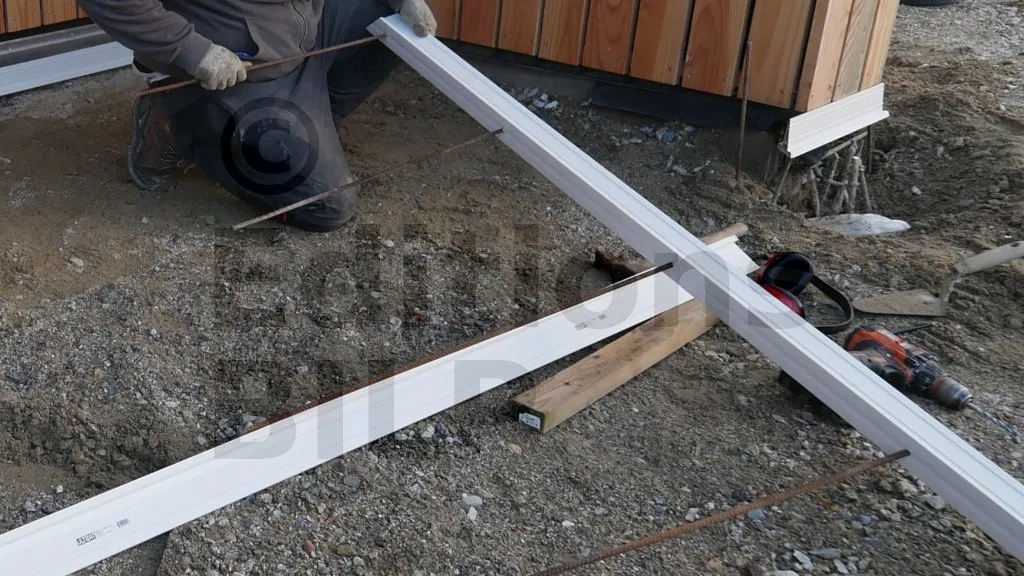 Le coffrage d’une dalle constitue une étape cruciale dans la construction, car il définit la forme de la future surface. Il est généralement réalisé en bois ; cependant, sur le projet Maison BILP, le coffrage est réalisé avec des profilés en aluminium qui vont également nous servir de joints de dilatation.