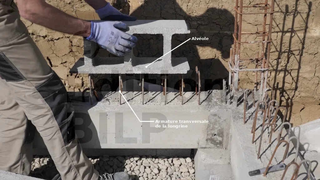 - Sur la partie où il a les boucles de levage, quand celles-ci empêchent la pose du bloc, leurs positions ont été projetées sur le bloc à bancher pour y faire des entailles.