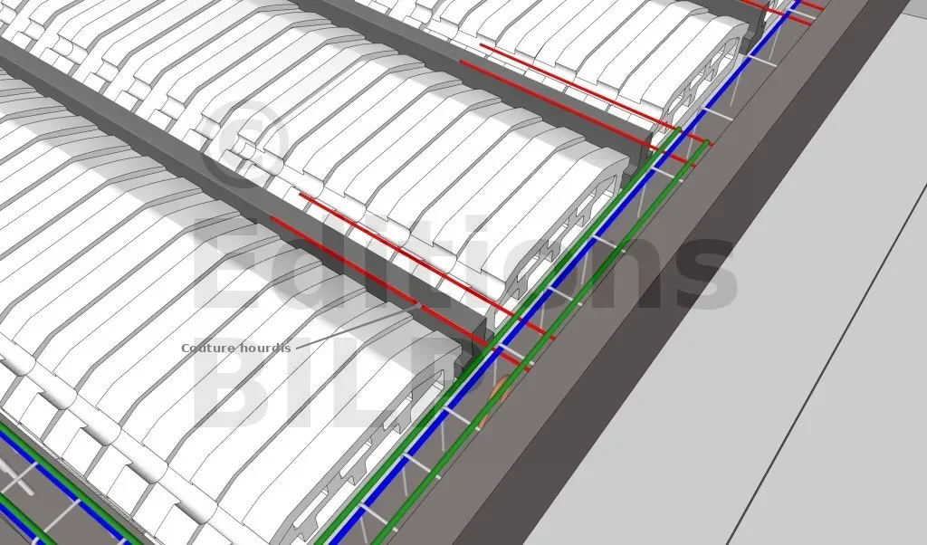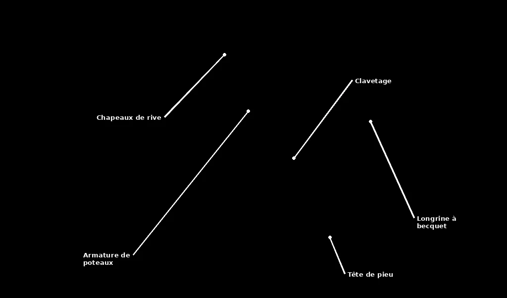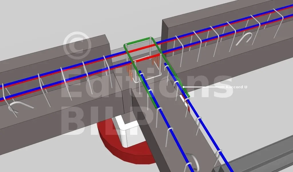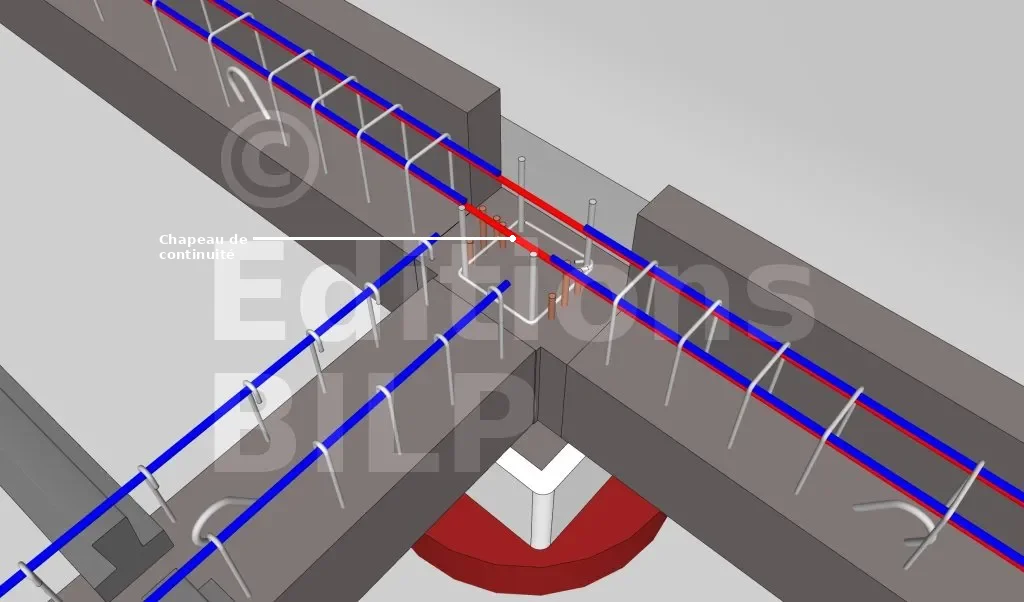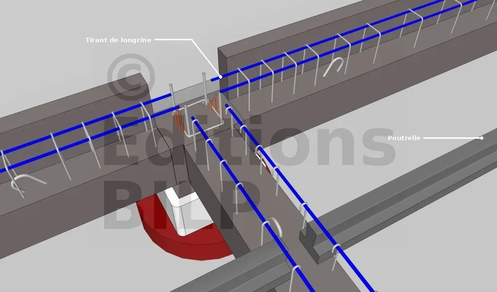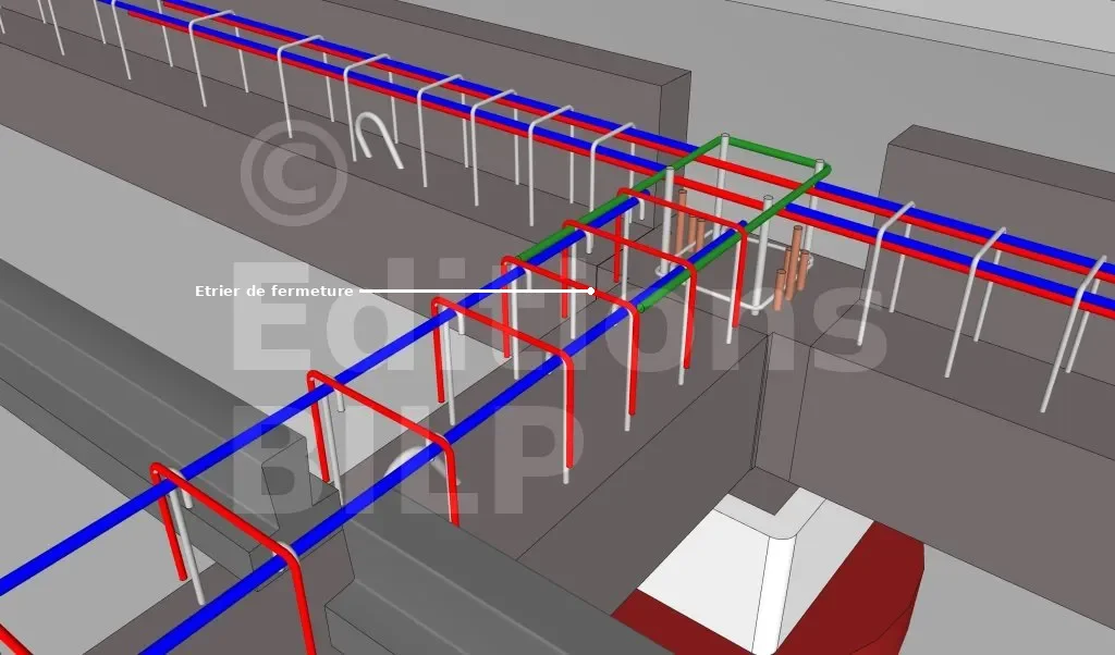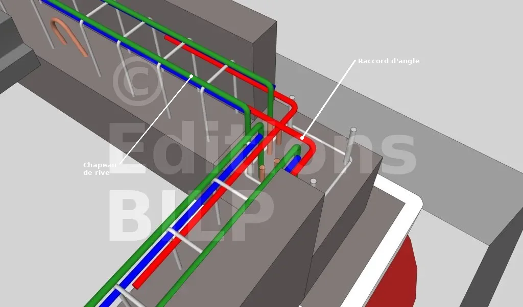 Des chapeaux de rive se trouvent au niveau de ces nœuds. Ils sont en forme de L et doivent être mis en place avant le coulage des clavetages.