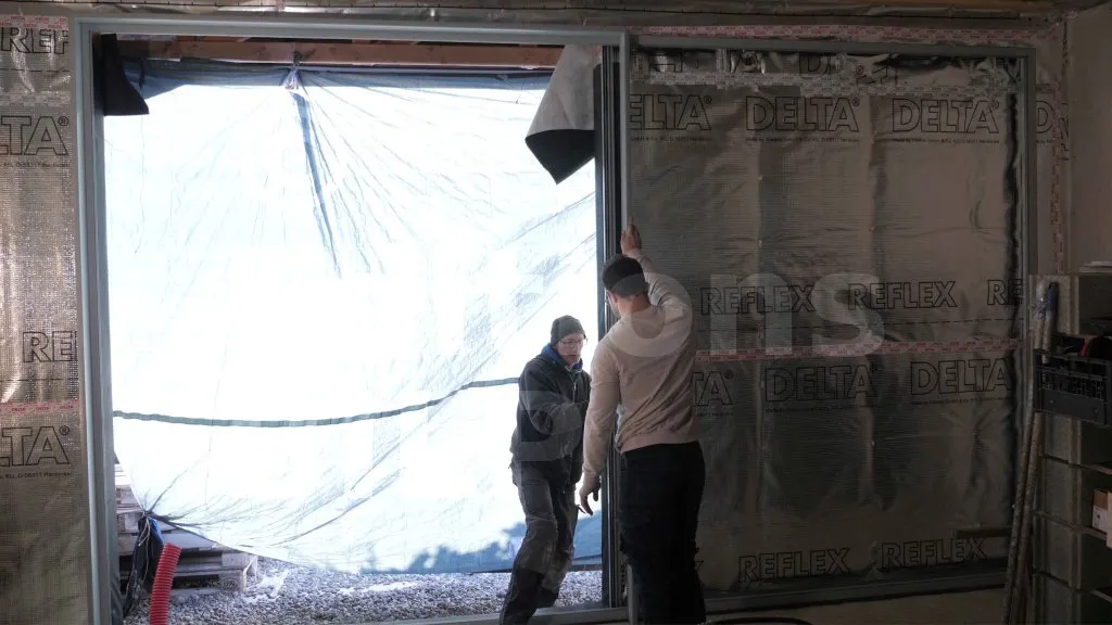 Pose de la structure de la baie vitrée (1min32sec)