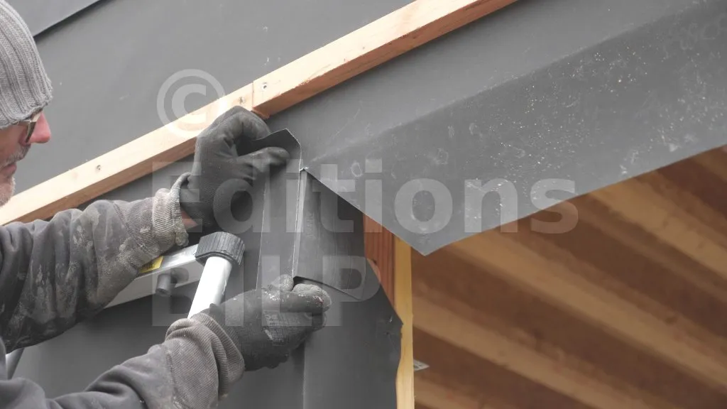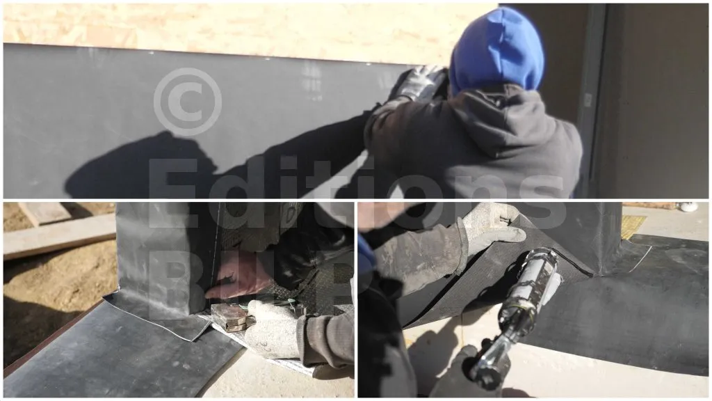 "Au niveau du recouvrement entre l’écran pare-pluie et la membrane EPDM, appliquez de la colle pour assurer la liaison. Ici, nous avons utilisé de la colle polyuréthane.