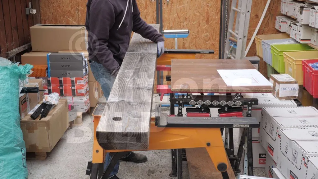 Le madrier est fixé sur les étaux-tréteaux pour éviter d’éventuels accidents.