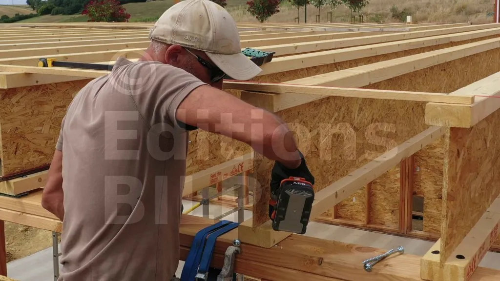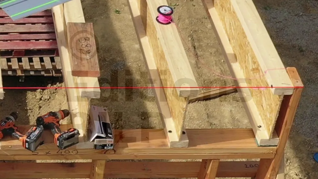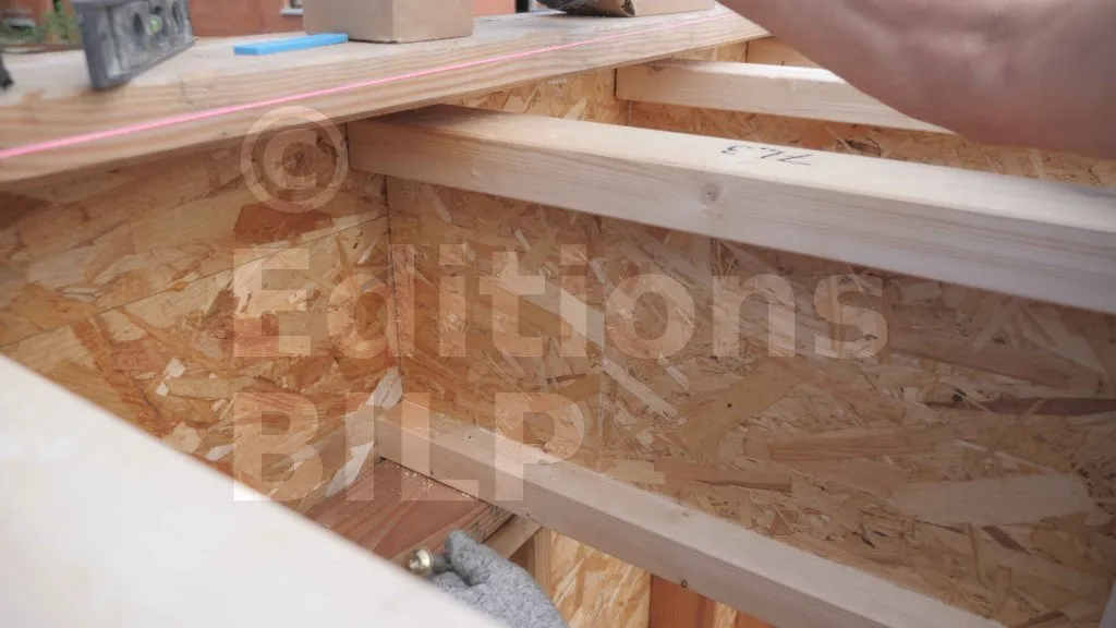 La pente et l’alignement des poutres ont été définis lors de la mise en place des cordeaux dans la partie "La mise en place sur les ossatures des murs" ci-dessus.