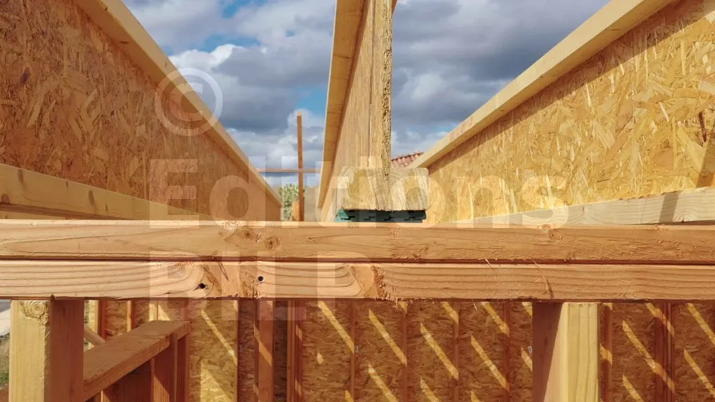 Ces appuis sont repérés et fixés contre les linteaux des grandes baies. Il s’agit ici d’Etriers pour poutres en I.