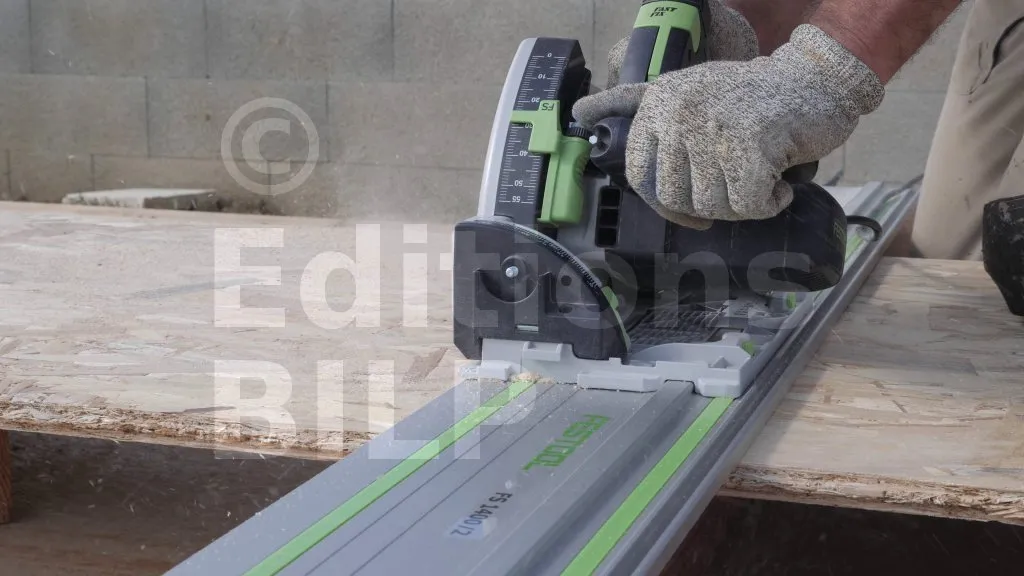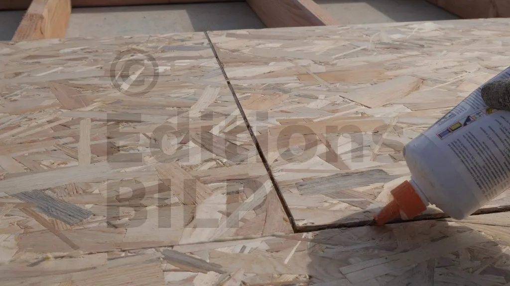 Sur le projet Maison BILP, des panneaux à rainures et à languettes ont été utilisés. En règle générale, les voiles de contreventement doivent être coupés au niveau des axes des montants. Cependant, avec le système de rainures et de languettes, les aboutages peuvent être réalisés même dans les vides (les espaces entre les montants). Pour renforcer les panneaux au niveau des jointures, il est nécessaire d’appliquer de la colle entre les rainures et les languettes.