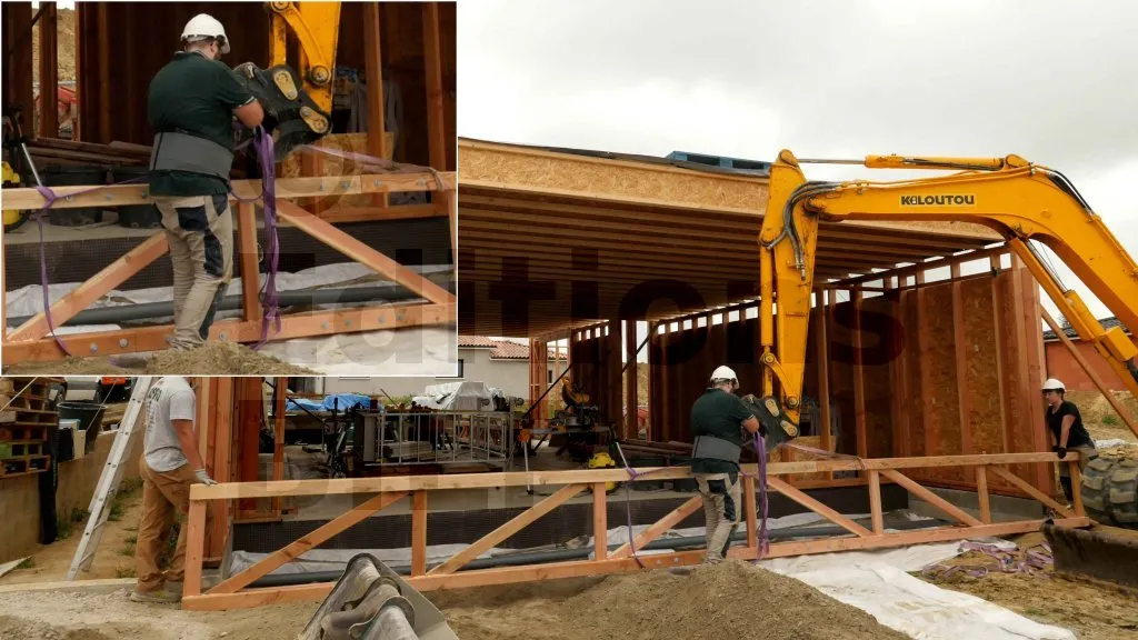 Cette solution est la plus rapide pour la mise en place des treillis. Malheureusement, il y a des emplacements inaccessibles à la pelle. Ce sont les treillis 4 qui ont été posés avec cette solution en raison de son emplacement face au chemin d’accès du chantier.
