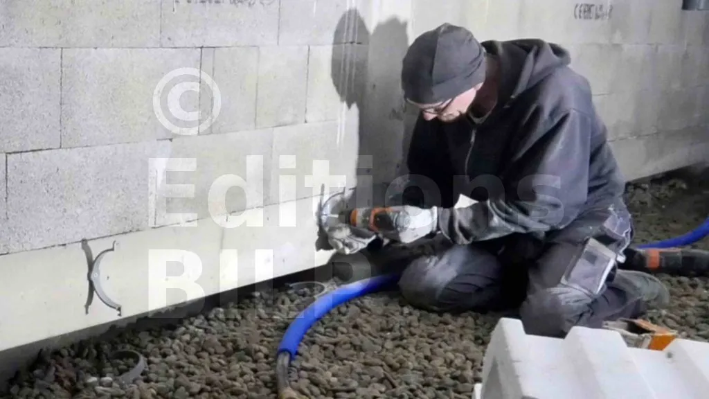 La seconde étape a été la mise en place des colliers de fixation. Ceux-ci ont été ancrés dans le mur à l’aide de chevilles et de vis, après repérage des hauteurs. Cette opération garantit le bon maintien des conduites tout en respectant les pentes imposées.
