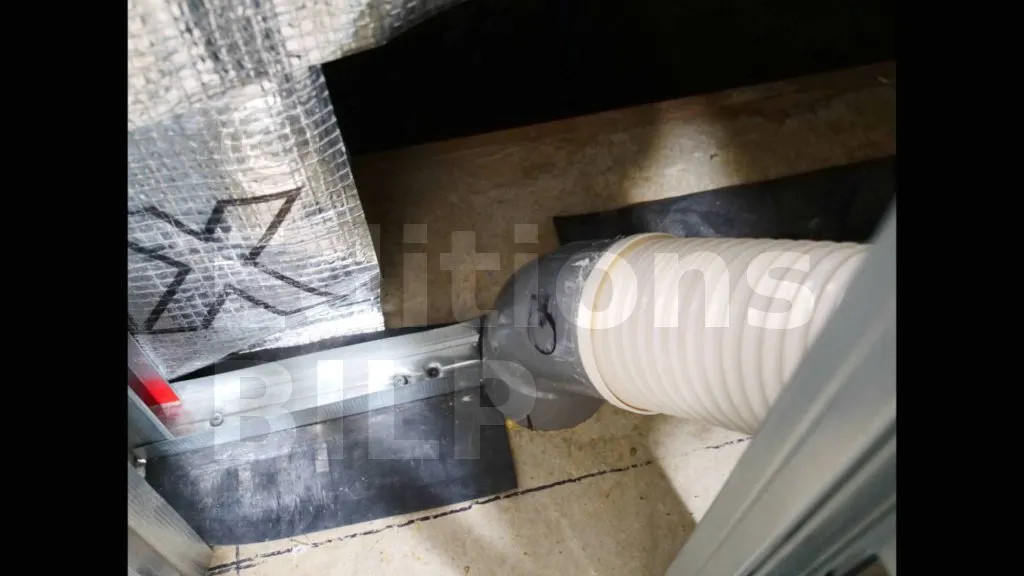 Pour raccorder l’attente d’évacuation avec la cuvette, nous avons utilisé un siphon accordéon. Ce type de raccord flexible offre l’avantage de s’adapter facilement à la position de la cuvette, même en cas de légers écarts. Son installation est simple : il suffit de l’emboîter dans le raccord en PVC à 45° tout en veillant à assurer une bonne étanchéité.