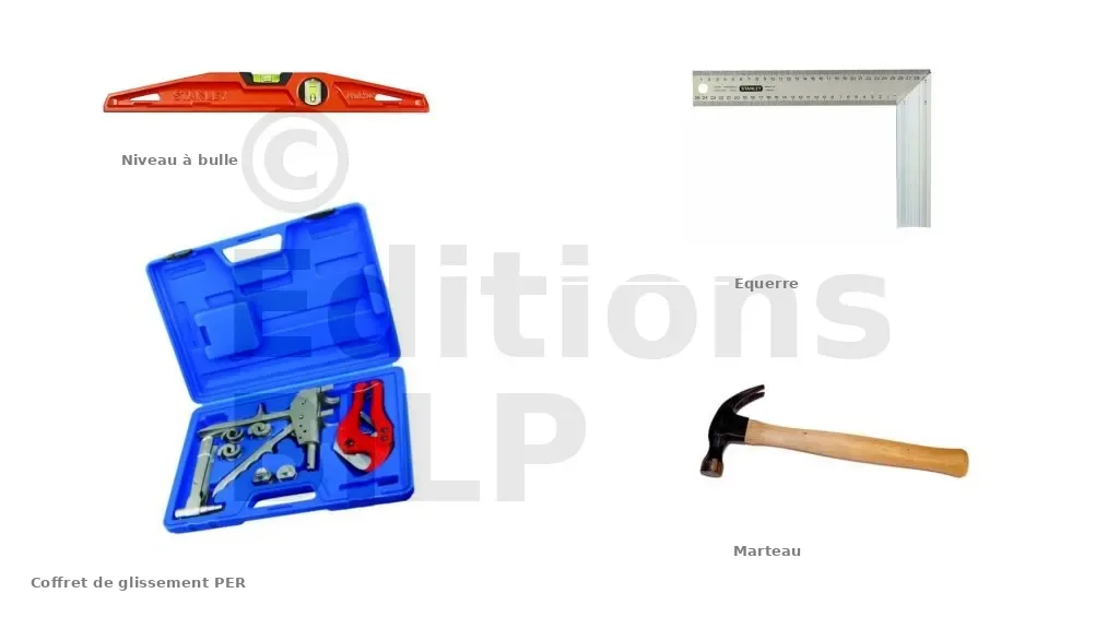 Rassemblez les outils spécifiques illustrés dans l’image ci-contre pour le montage de notre WC suspendu, ainsi que les équipements de protection individuelle nécessaires pour garantir votre sécurité.