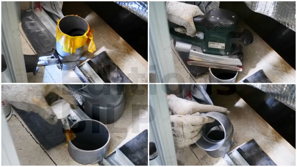 Nous avons ajouté une manchette de raccordement entre la sortie de la cuvette et le siphon accordéon. Cette pièce permet de garantir une liaison solide et sans fuite entre les éléments. Une fois bien mélangée, elle assure un écoulement optimal des eaux usées, tout en limitant les risques de mauvaises odeurs.