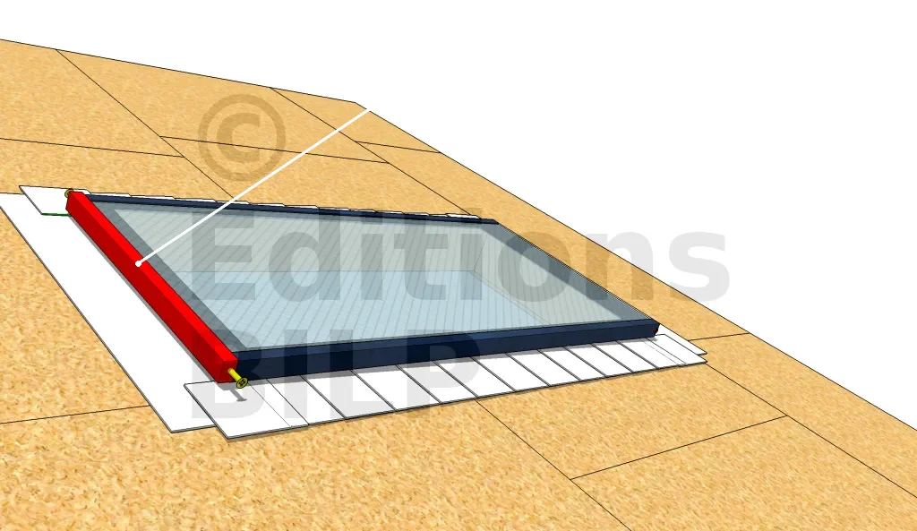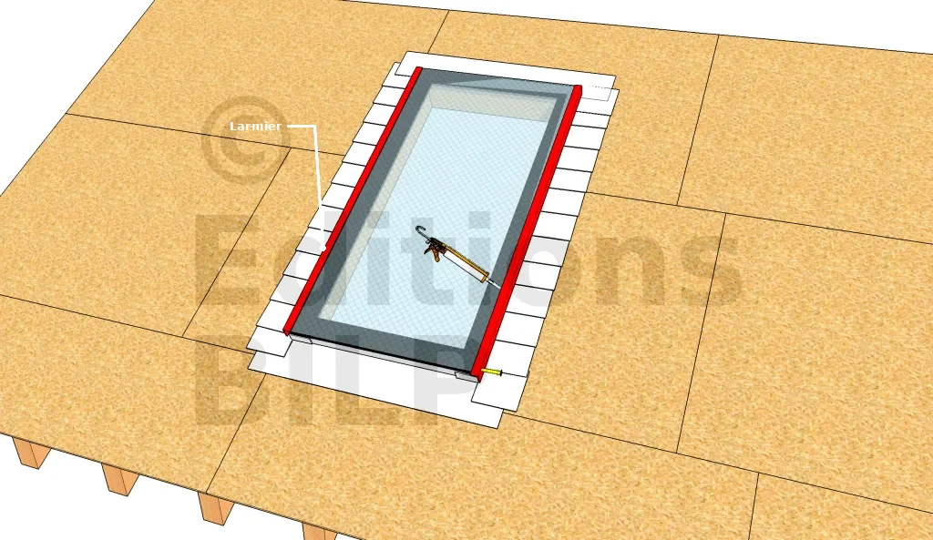 Utiliser des pièces d’angles s’adaptant aux étanchéités extérieures pour les coins. Calfeutrer autour de la bordure de l’ouverture, à la jonction entre le bâti et les panneaux du toit.