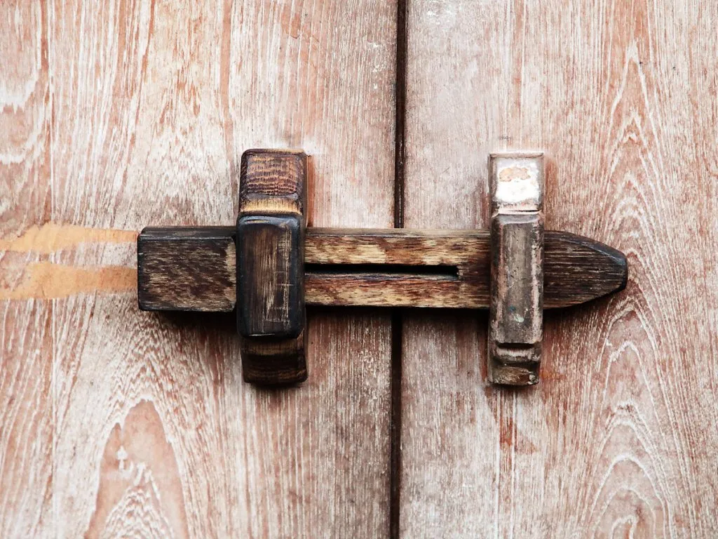 Un verrou en bois peut aussi être créé et fixé de part et d’autre de la porte.