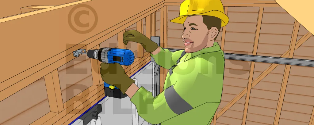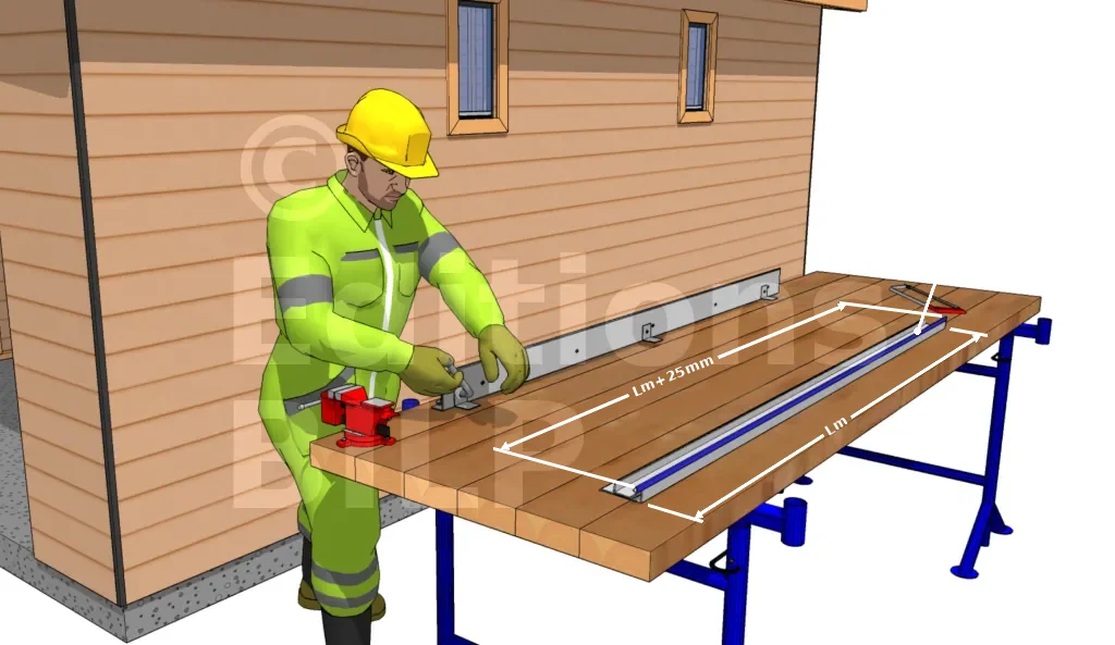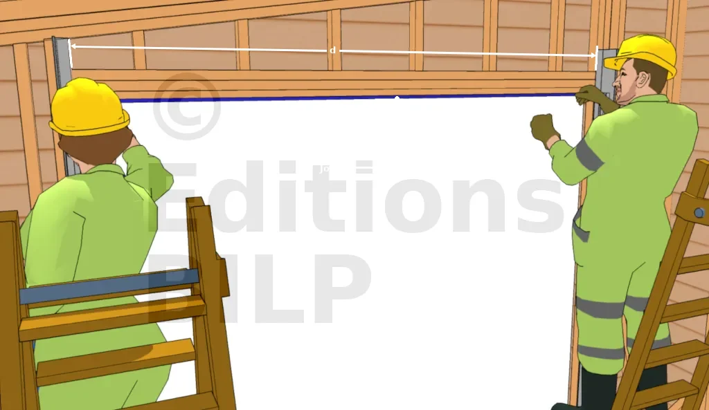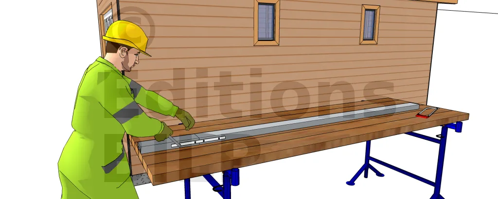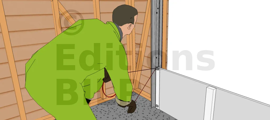 Repérer les éléments de fixation, mesurer, découper et fixer chaque pièce toujours en vérifiant l’horizontalité des rails.