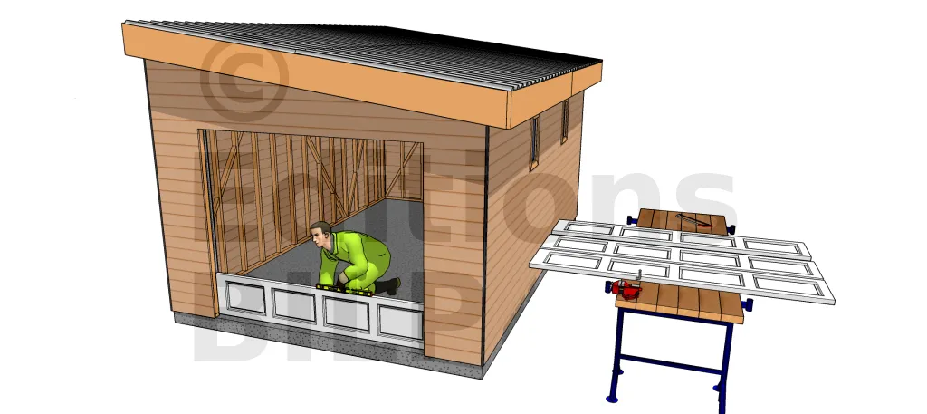 - Installer les roulettes et installer le premier panneau de la porte sur les montants,
