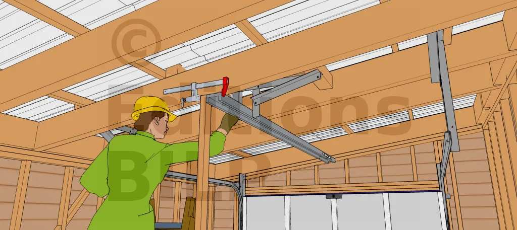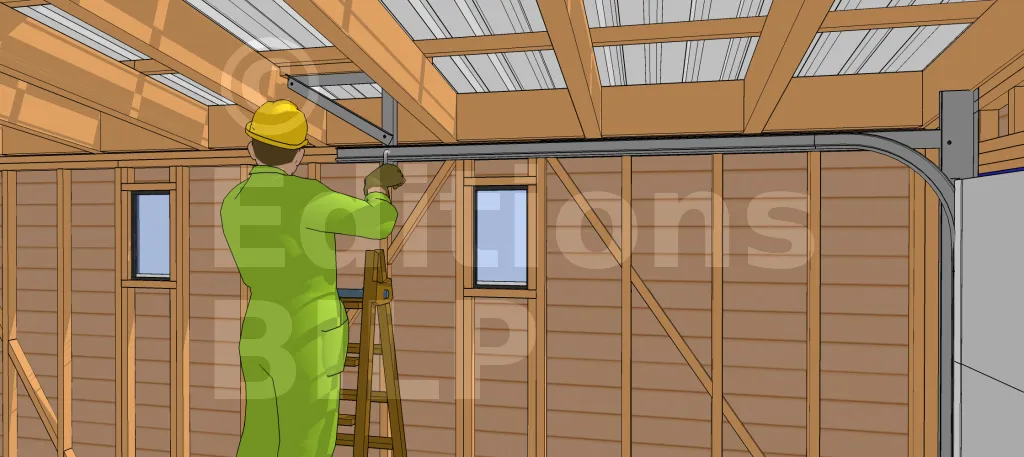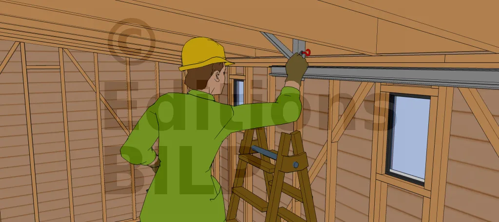 - Installer ensuite les équerres à l’extrémité du rail aux éléments de la charpente.