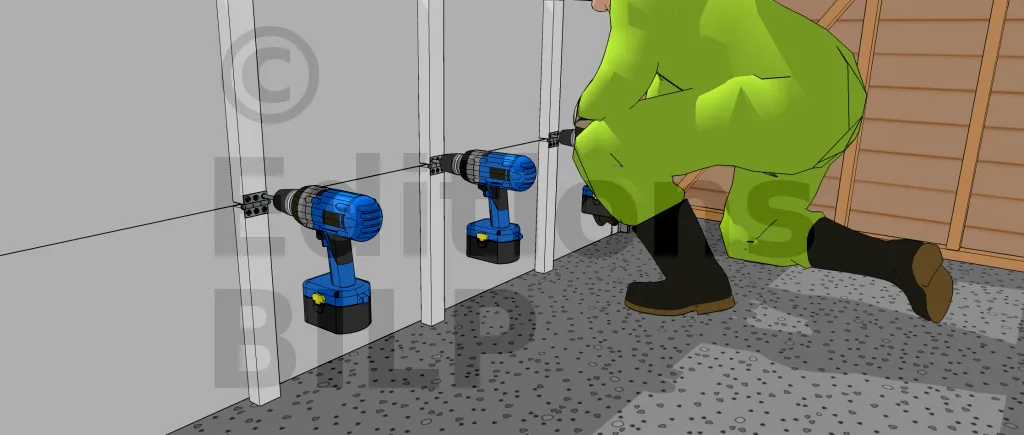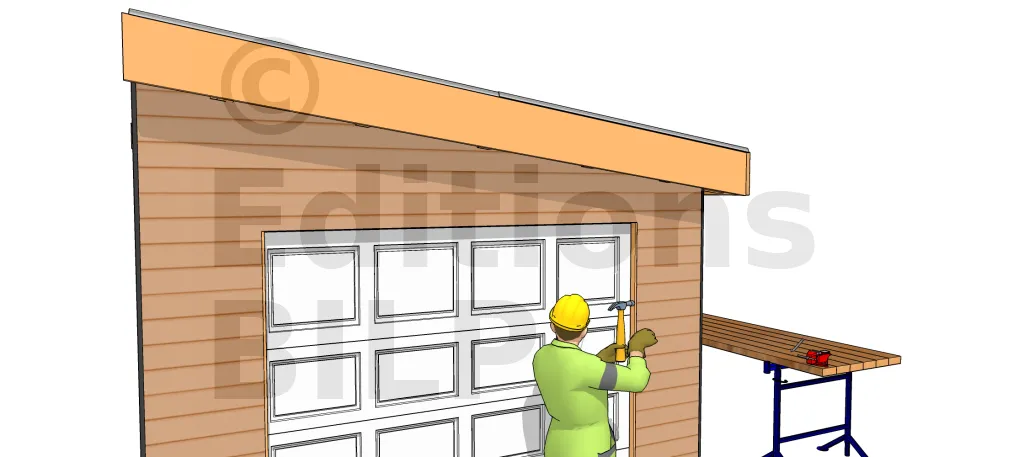 Dans un abri en bois, il faut fixer les rails horizontaux sur les pannes, chevrons, ou entraits de la charpente.
