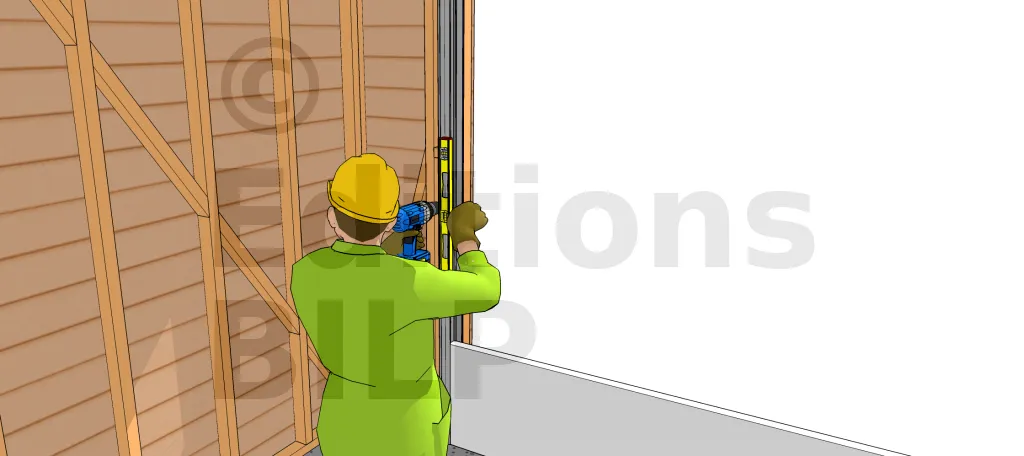 - Vérifier que le panneau avec les montants soit au beau milieu de l’ouverture. Pour ce faire, vous pouvez tracer préalablement des repères sur les montants du bâtiment.