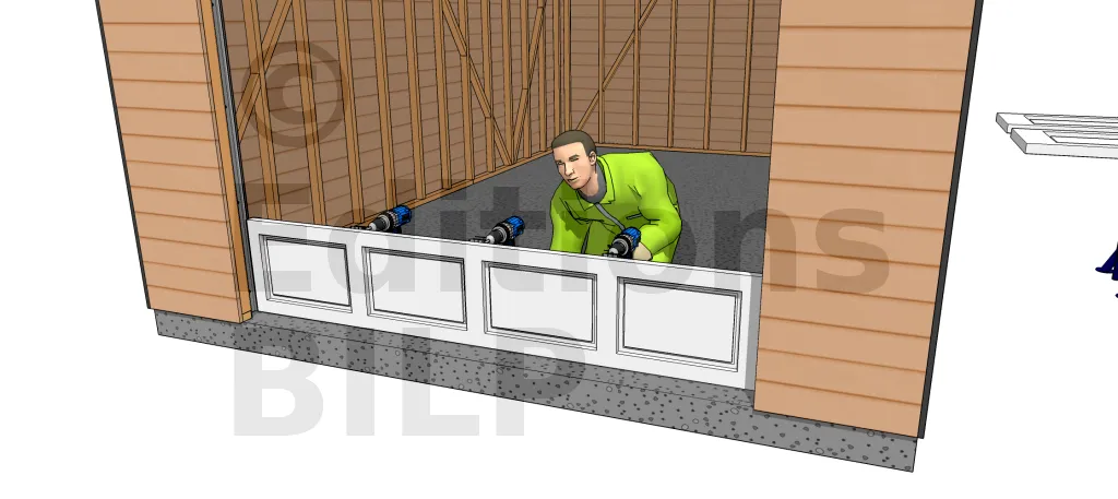 - Vérifier l’horizontalité de ce panneau à l’aide d’un niveau à bulle et ajouter des cales dessous si nécessaire.