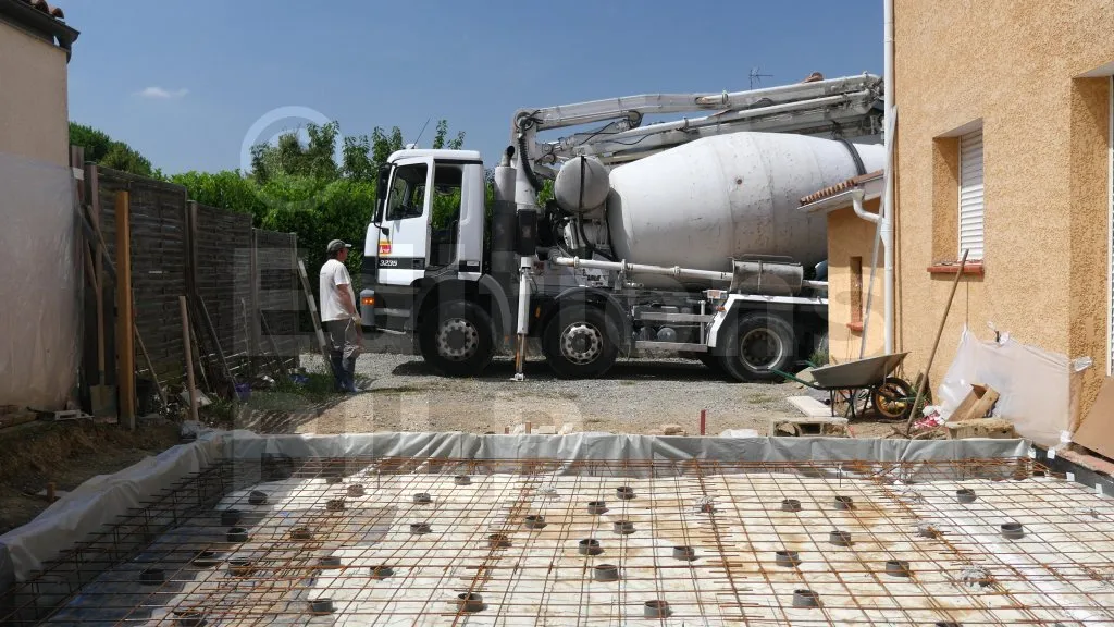 - Le coulage avec un camion toupie muni d’un mixo-pompe