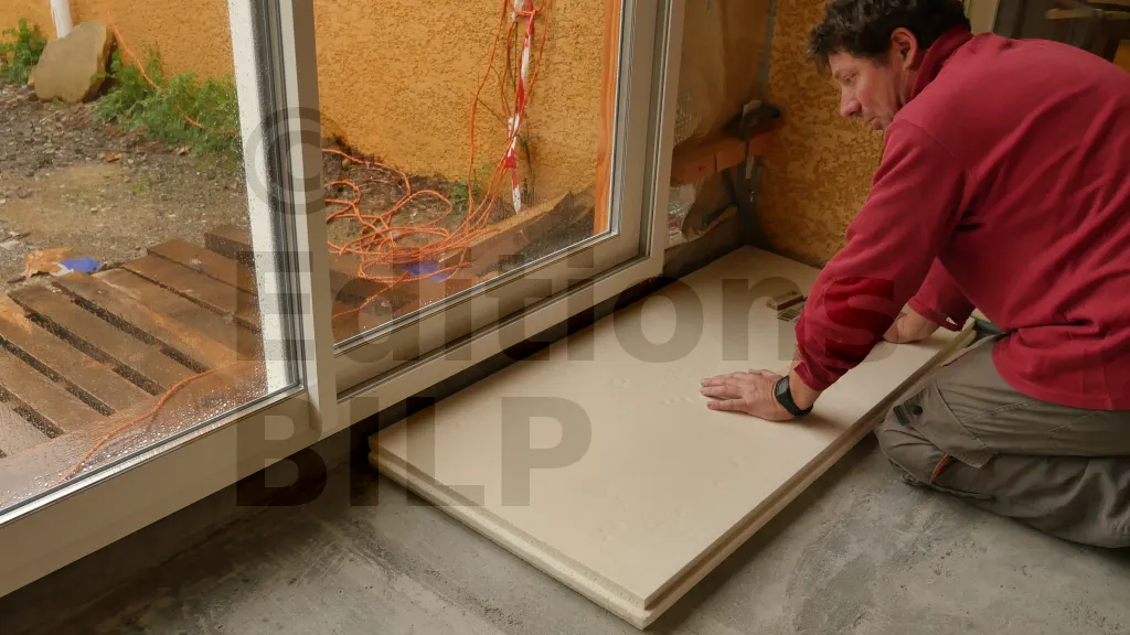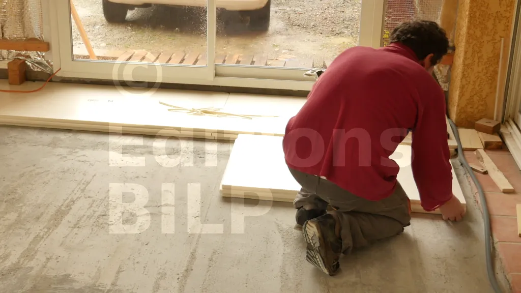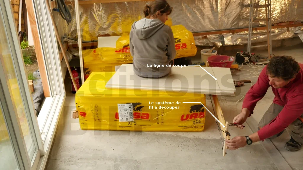 Le mur de soubassement est également isolé à l’intérieur avec des plaques de polyuréthane.