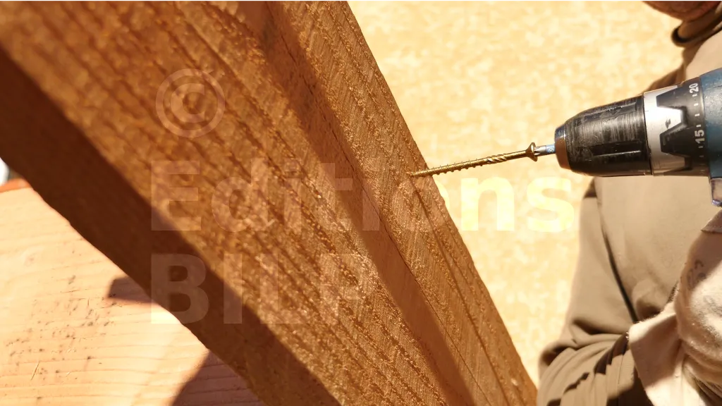 La fixation se fait avec deux Vis BOIS structurelle - tête fraisée - filetage partiel.