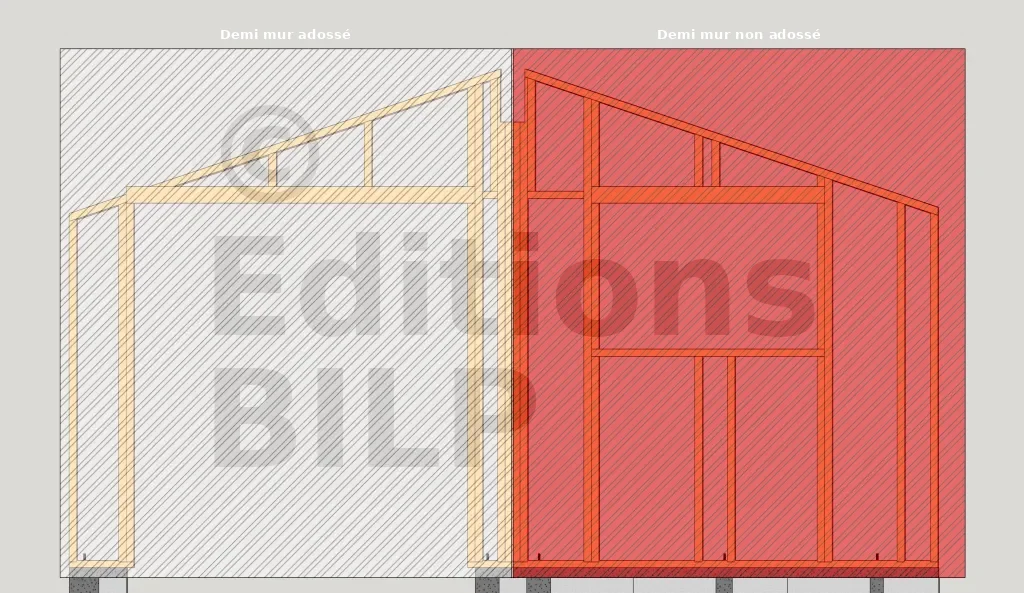 Ce mur est composé de deux panneaux et son montage se fait en deux étapes. Le demi-mur adossé est le premier à être monté. Les deux panneaux sont solidarisés au niveau de leur jonction à l’aide de tiges filetées.