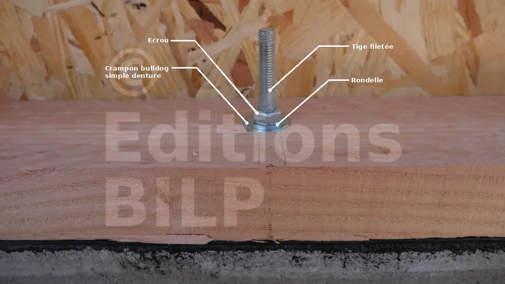 La fixation est renforcée par trois pointes D4L100 disposées perpendiculairement à la lisse basse.