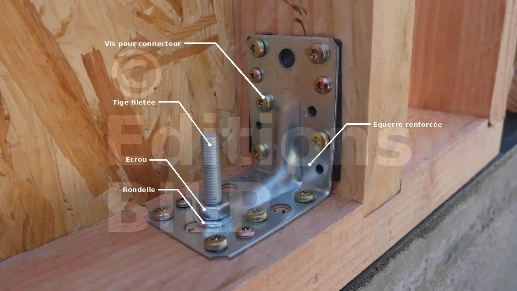 La fixation est renforcée par deux pointes D4L100 sur les deux côtés des montants avec un angle d’inclinaison de 45°.