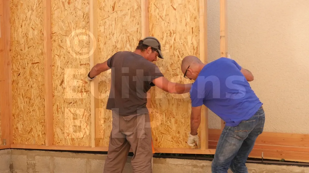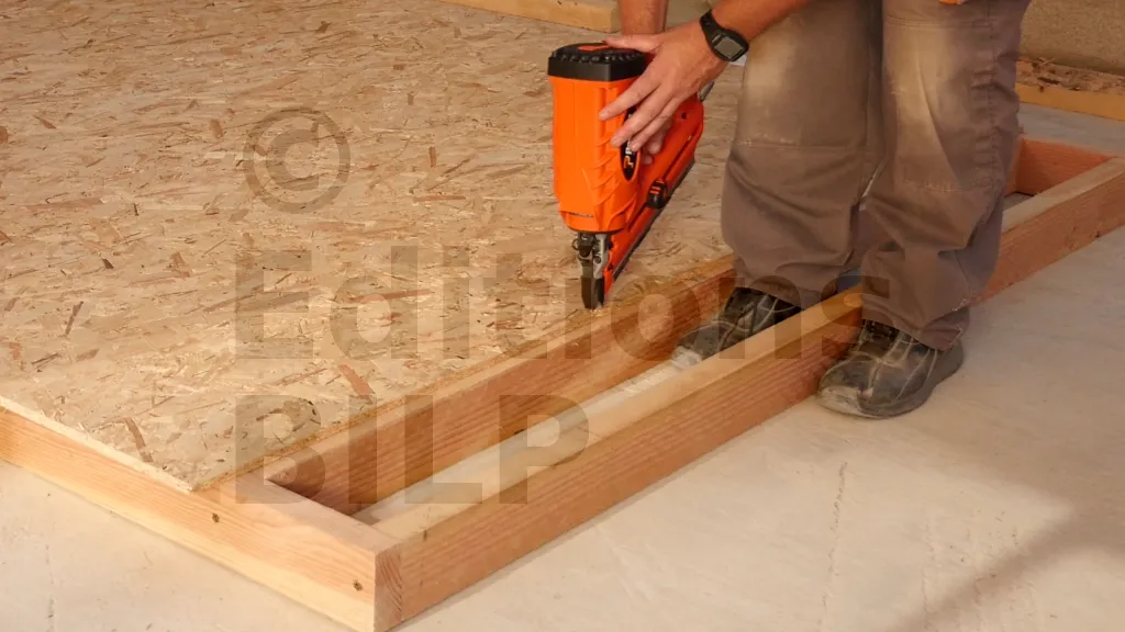 La fixation des panneaux est renforcée avec des clous sur les entraxes des montants et sur les lisses.
