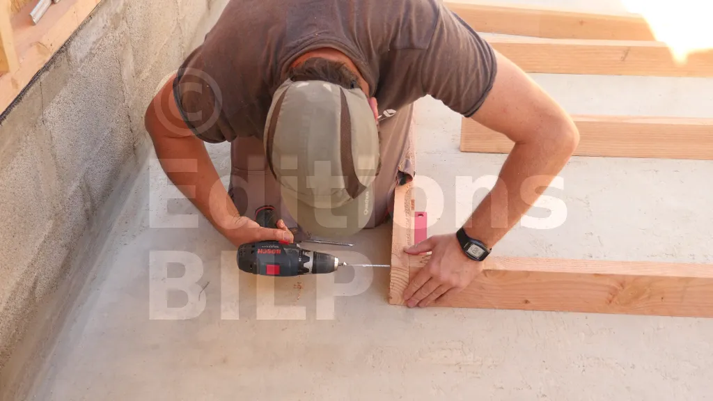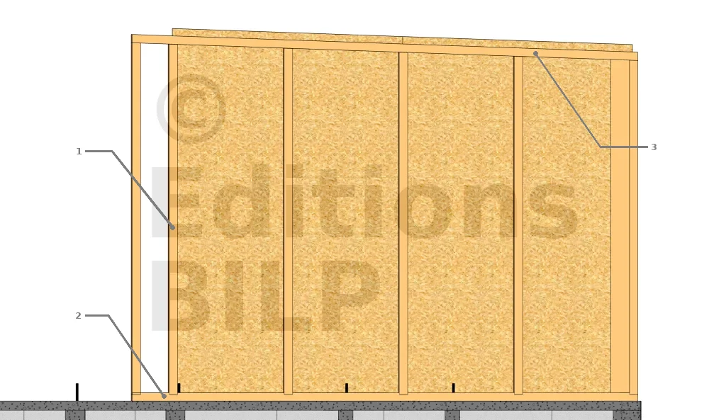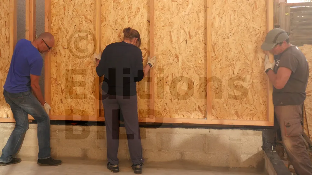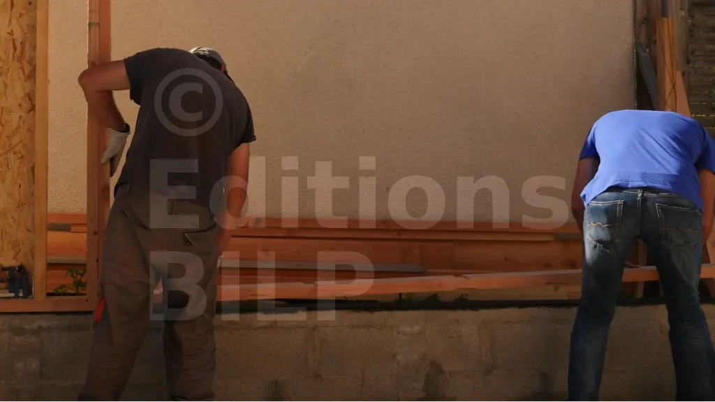 Après avoir démonté le premier montant et la lisse basse de leur emplacement, les autres éléments du panneau sont assemblés en suivant les même opérations décrites dans l’article Montage du demi-mur M1.